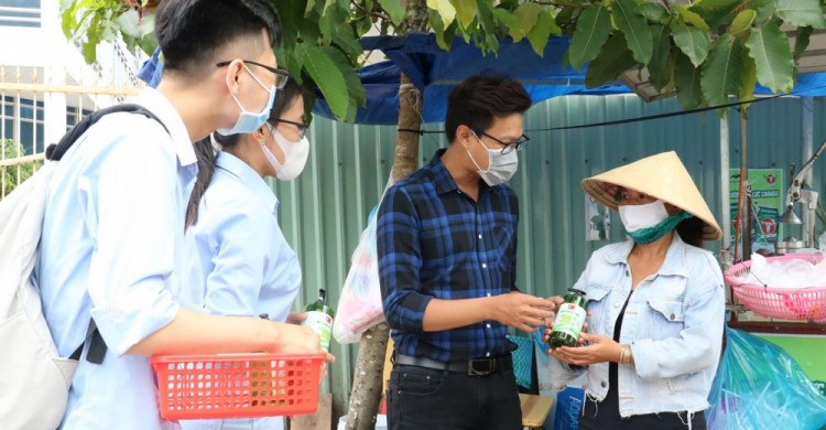 Các sản phẩm nước rửa tay này không chỉ giúp sát khuẩn, mà còn có nhiều thành phần dưỡng ẩm da tay, chăm sóc da tay. Đơn cử như nước rửa tay sát khuẩn dạng khô ngoài nước cất, cồn, glycerin, còn có tinh chất nha đam, rất tốt cho da tay. Theo chị Vi, ý tưởng ban đầu cán bộ, sinh viên chế xuất nước sát khuẩn với mong muốn bảo vệ sức khỏe cho đội ngũ cán bộ, nhân viên, giảng viên và sinh viên nhà trường. Khi dịch bệnh diễn biến phức tạp, tuổi trẻ trường mong muốn chung sức cùng các cấp, các ngành tham gia phòng, chống dịch COVID-19. Vì vậy, trong các hoạt động tình nguyện, trường đã tổ chức tặng nước rửa tay sát khuẩn cho bà con tiểu thương, học sinh, sinh viên, đồng thời lồng ghép tuyên truyền phòng, chống dịch bệnh cho bà con.