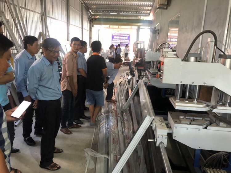 Đại biểu tham quan, nghiệm thu đề án "Hỗ trợ ứng dụng máy móc thiết bị trong dây chuyền sản xuất cửa nhựa và cửa nhôm” tại Kiến Tường năm 2019