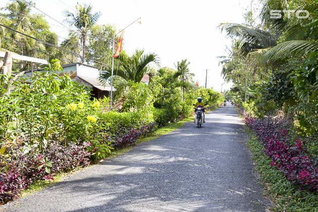 Tuyến lộ ấp Mỹ Thành - tuyến đường nông thôn mới kiểu mẫu của xã Mỹ Quới. Ảnh: M.Linh