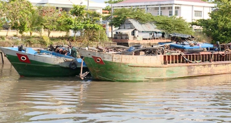 Ngày 6-4, ngành chức năng tỉnh Vĩnh Long đang tiến hành xử lý các phương tiện hút cát sông trái phép.