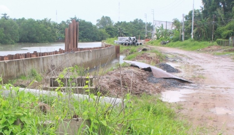 Đê bao chống ngập TP Vĩnh Long- đoạn qua Phường 2- đang được thi công.