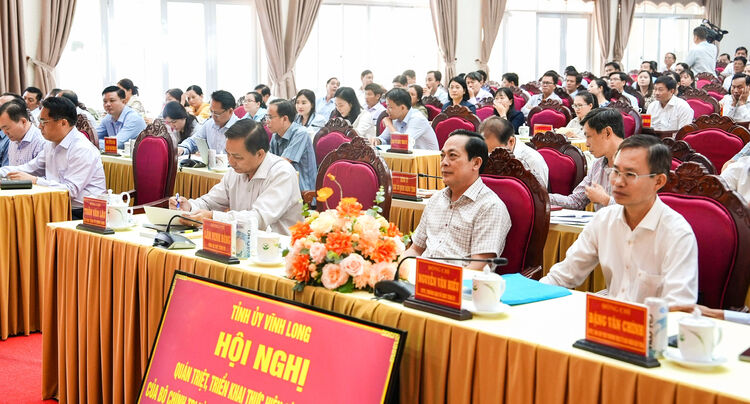 Các đồng chí lãnh đạo tỉnh Vĩnh Long tham dự hội nghị.