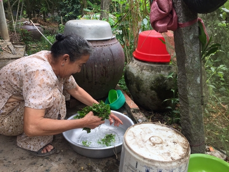Không còn cách nào khác, ông Mười đành “chơi sang” mua nước thùng để dùng vào việc nấu nướng, còn tắm giặt thì múc nước sông rồi lóng phèn xài đỡ qua ngày. “Nhà tui mỗi ngày xài hết 2 thùng nước, giá mỗi thùng từ 12.000- 15.000đ. Hên là giá cả không lên, chứ hoàn cảnh này mà tăng giá là nông dân tụi tui khổ trăm bề”- ông Mười nói.