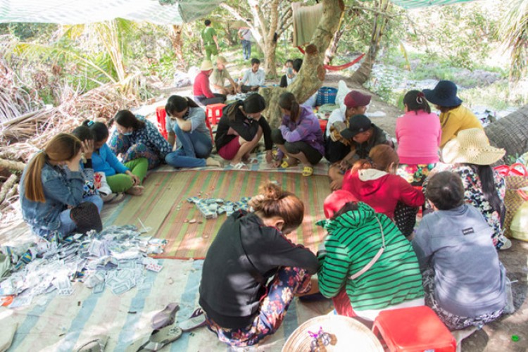 Theo công an, "sòng bạc quý bà" này nằm sâu trong vườn trái cây, chỉ có 1 đường bê tông nhỏ đi vào và có nhiều lớp cảnh giới. Các đối tượng đã dựng mái che, chiếu lót nền và chuẩn bị sẵn thức ăn, nước uống và võng để nghỉ ngơi. Các con bạcthường xuyên tụ tập tại đây để đánh bạc, gây mất trật tự tại địa phương.