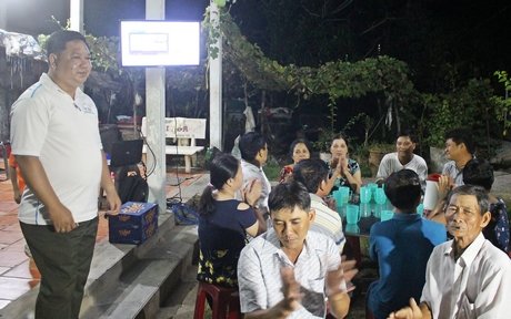 Người dân ấp Long Khánh phấn khởi đi trên tuyến đèn đường “thắp sáng miền quê” vừa được thắp sáng lần đầu tiên vào tối 13-5-2020.