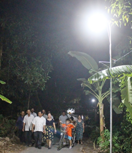 Sau 15 ngày thi công, tuyến đèn đường dài khoảng 1,8 km với 40 trụ đèn kết hợp cột cờ đã được đưa vào sử dụng. Công trình có tổng kinh phí khoảng 75 triệu đồng do mạnh thường quân hỗ trợ và huy động sức dân.