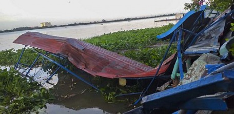 Vào thời gian trên, theo người dân sinh sống dưới bè cá gần hiện trường cho biết, có một xà lan loại lớn lưu thông trên sông Tiền, hướng từ huyện Mang Thít về cầu Mỹ Thuận. Khi đến km106+350 (đoạn thuộc thủy phận ấp An Thuận, xã An Bình- Long Hồ) thì tông thẳng vào cầu đi bộ và nhà trưng bày bánh kẹo của Khu du lịch Vinh Sang.