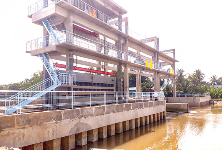 Cống Láng Thé (Trà Vinh, ảnh) và cống Cái Tôm (Vĩnh Long) là hai trong những công trình kiểm soát mặn quan trọng ở vùng Nam Măng Thít (2 tỉnh Trà Vinh - Vĩnh Long).