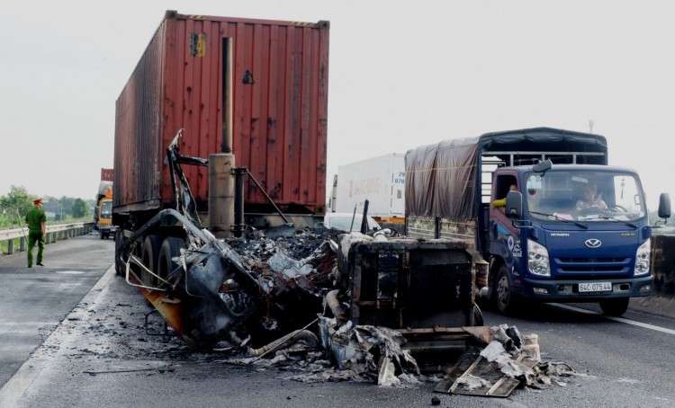Theo thông tin ban đầu từ, khoảng 5 giờ sáng tại Km24 + 500 thuộc địa bàn huyện Bến Lức, tỉnh Long An, một đầu kéo container kéo theo thùng hàng trống đang đánh lái sang phía bên phải thì xảy ra va quẹt nhẹ vào 1 đầu kéo container khác đang vượt lên.