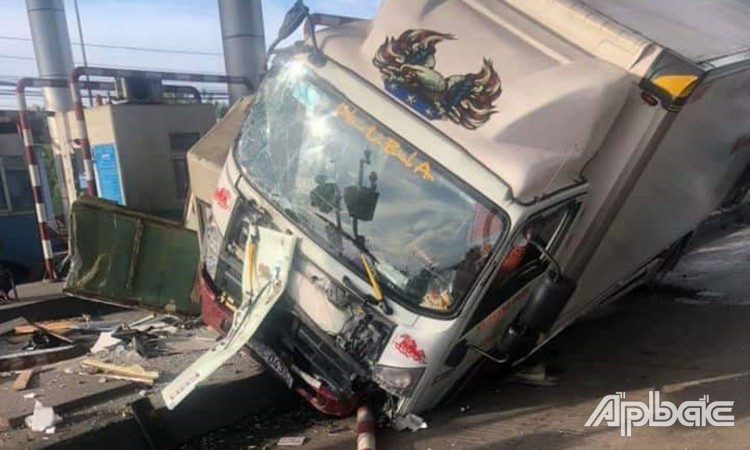Theo điều tra ban đầu, vào lúc 4 giờ 30 phút ngày 13-9, Trần Quốc Cường (sinh năm 1983, ngụ ấp 3, xã Phú Lý, huyện Vĩnh Cữu, tỉnh Đồng Nai) điều khiển xe ô tô tải mang biển kiểm soát 69C-043.64 lưu thông hướng Mỹ Thuận - Trung Lương. Khi phương tiện đến đoạn trên bất ngờ va chạm vào mũi tàu Trạm thu phí BOT Cai Lậy.